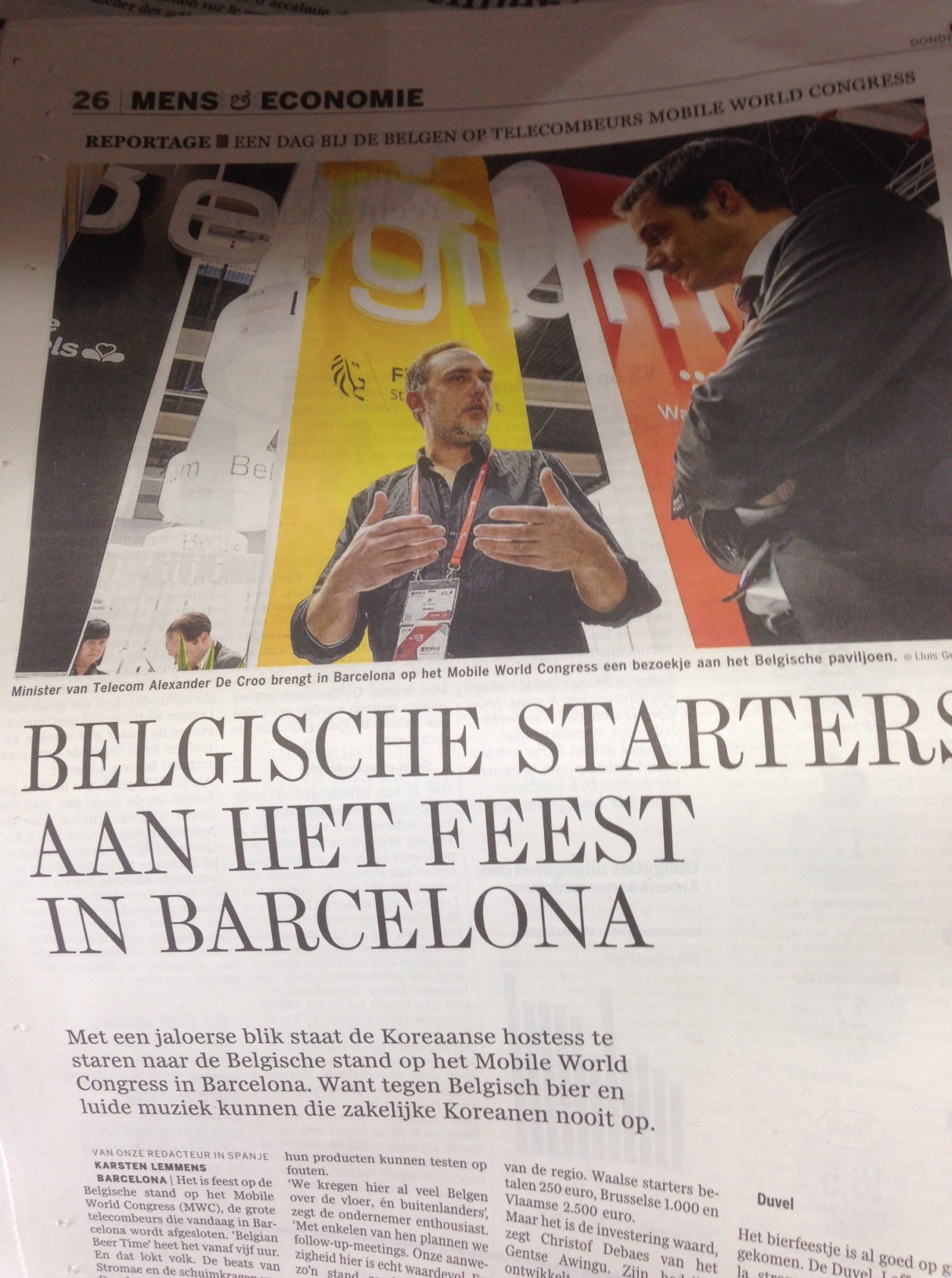 Por ejemplo. El Mobile World Congress, verdadero motivo de la visita de Bourgeois a Barcelona, venía mencionado en esta página interior de De standaard. Pero ni una vez se ha hecho referencia en un medio importante en la prensa impresa, ni en la web, al encuentro entre los dos primos hermanos del soberanismo.