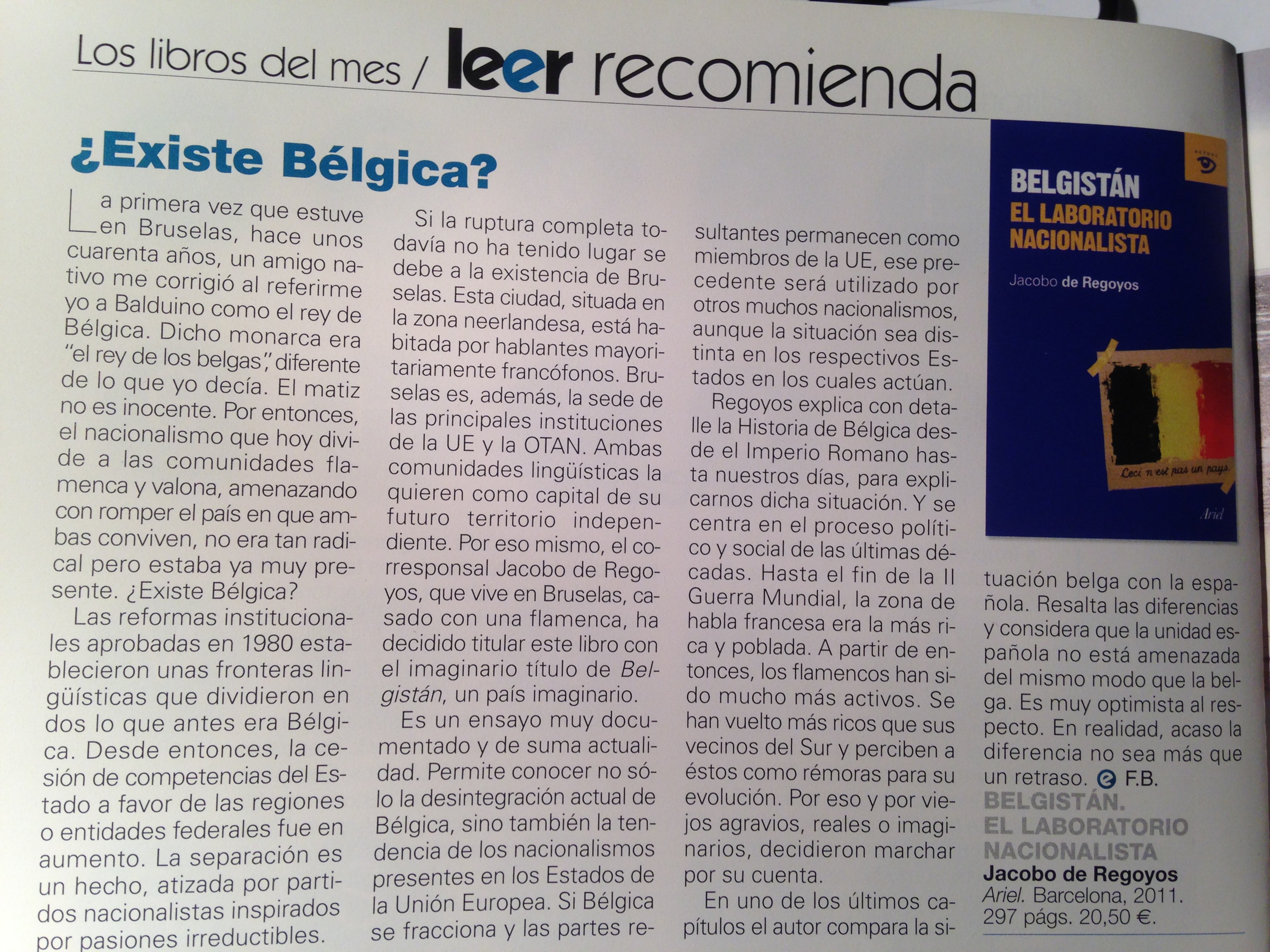 He sido consciente de ello al entrar hace unos minutos aquí en su blog para decirle que le oí hace poco mencionar su libro sobre Bélgica (Belgistán, el laboratorio nacionalista). Ni corto ni perezoso lo pedí, lo he leído y me ha parecido de sumo interés. Ya conocía bastantes cosas sobre lo que es ese país, que siempre me pareció un estado singular, hasta que gracias a usted he comprendido que es un estado… dual.